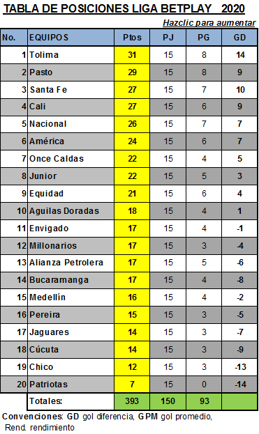 - Hechos de la jornada nueve de la Liga BetPlay 2020